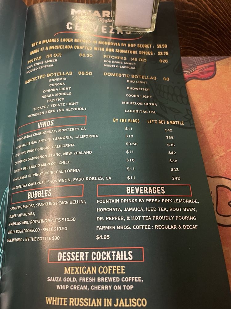 Mijares Mexican Restaurant Menu